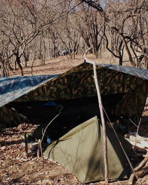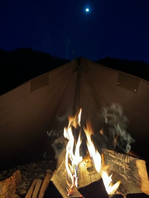 難燃素材で出来ている為、焚き火の近くに建てたり、風を受けてなびく炎でも安全です。
